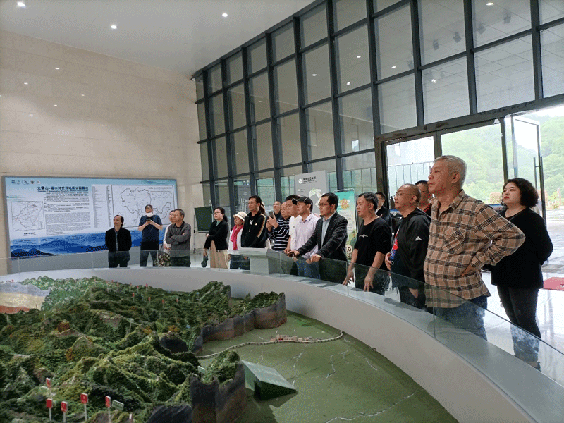 在巴山游擊隊紀念館,作家們回顧當年紅四方面軍西渡嘉陵江前組建的一支留守川陜革命根據地的正規(guī)武裝力量的革命事跡、光輝歷程,追尋前輩光輝足跡,緬懷先烈豐功偉績。巴山游擊隊建立于1935年2月,這支隊伍在劉子才、趙明恩等的領導下,活動在以南江縣桃園為中心的茫茫林海中,在極其艱苦的條件下堅持戰(zhàn)斗5年之久,最終由于強敵壓境和內部叛變慘遭失敗。先輩們把鮮血灑在了這里,染紅了這片土地,讓作家們唏噓不已?!袄狭质菭I房,茅草蓋身上,石頭當枕頭,睡呀睡得香……”在豪邁的游擊隊戰(zhàn)歌中,作家們的心靈再一次接受了洗禮?!拔乙呀浵群髞磉^巴中八次,今后我會創(chuàng)作一些與光霧山有關的作品?!敝小锻跗和隆返暮?谑凶鲄f會主席、國家一級作家張品成說道。大家也紛紛表示,非常感謝主辦單位能提供這次機會,讓作家深切感受了巴中的生態(tài)之美,紅色文化的厚重。