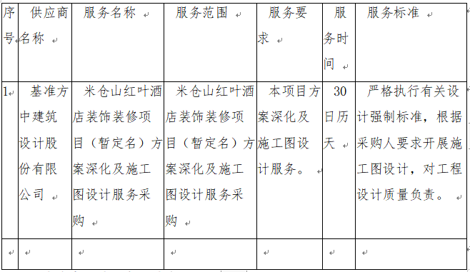 二、項目名稱:米倉山紅葉酒店裝飾裝修項目(暫定名)方案深化及施工圖設(shè)計服務(wù)采購