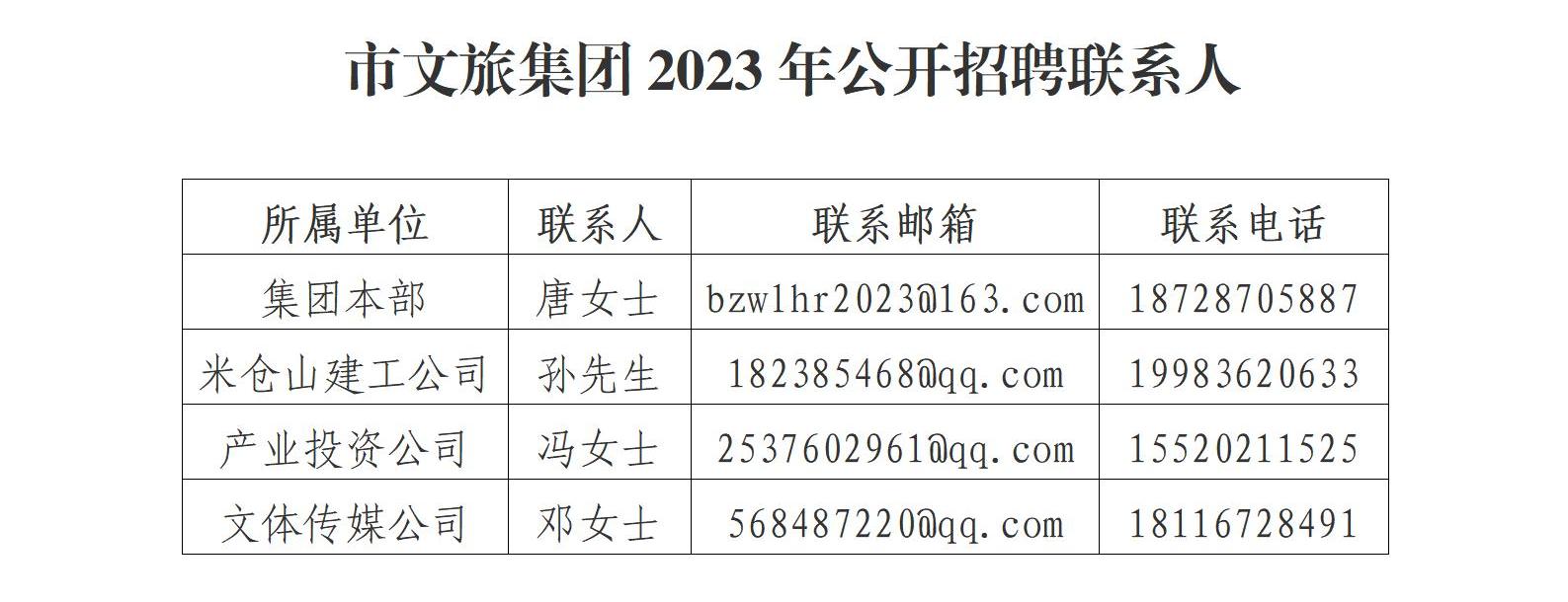 根據(jù)《巴中市文化旅游發(fā)展集團(tuán)有限公司2023年公開招聘公告》相關(guān)精神,現(xiàn)將市文旅集團(tuán)2023年公開招聘考試相關(guān)事宜公告如下: